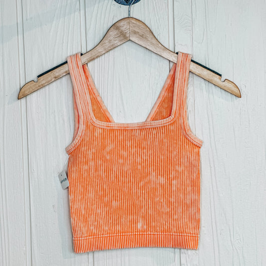 2 Way Neckline Washed Ribbed Cropped Tank Top - Lt. Orange