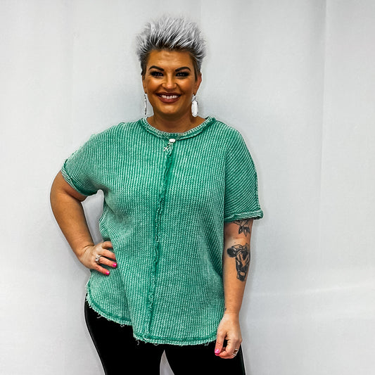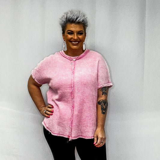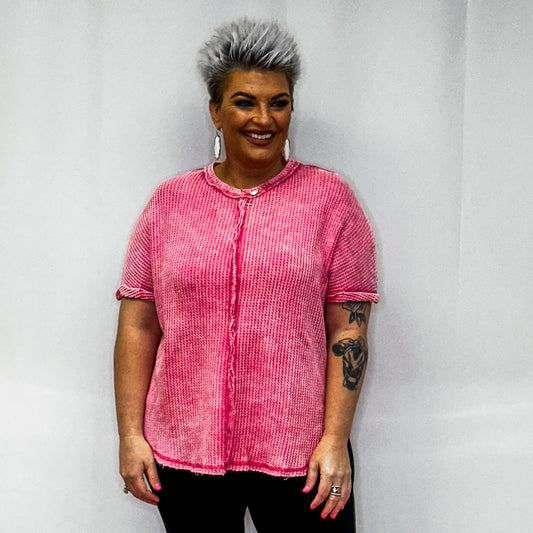 Baby Waffle Short Sleeve Top - Viva Magenta