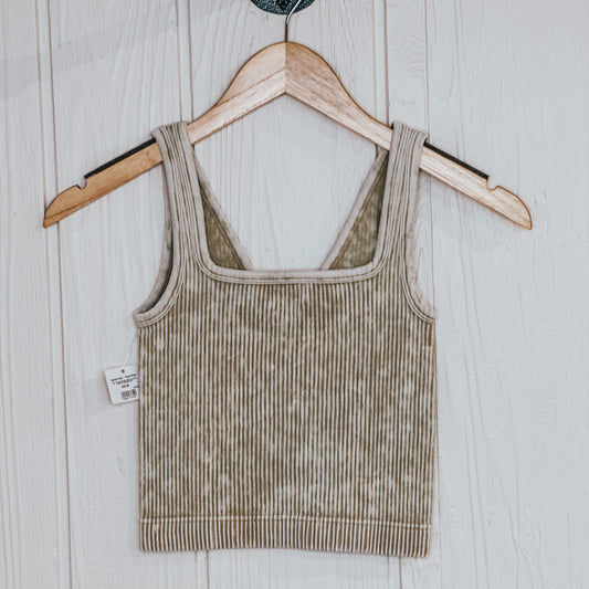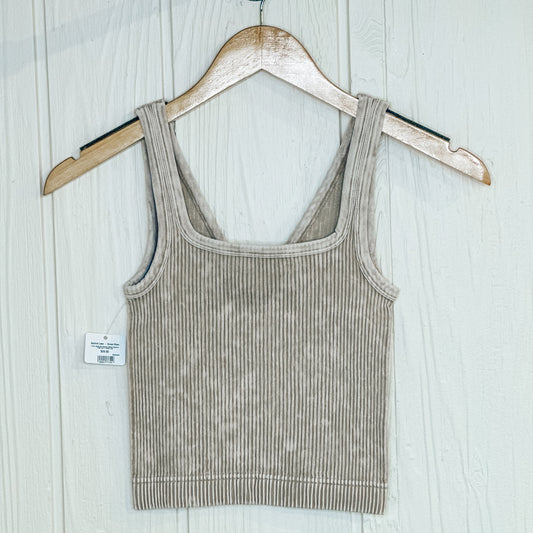 2 Way Neckline Washed Ribbed Cropped Tank Top - Ash Mocha