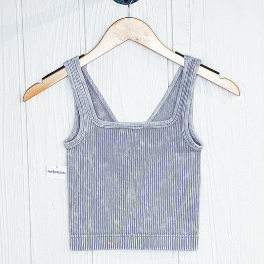 2 Way Neckline Washed Ribbed Cropped Tank Top - Sleet
