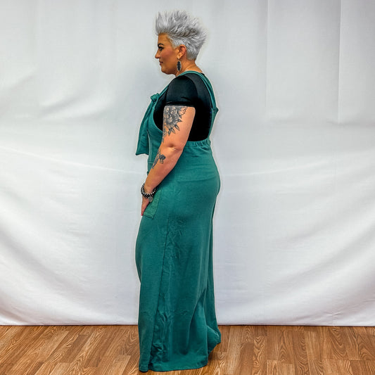Adjustable Straps Jumpsuit with Pockets - Hunter Green