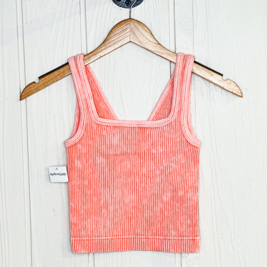 2 Way Neckline Washed Ribbed Cropped Tank Top - Coral