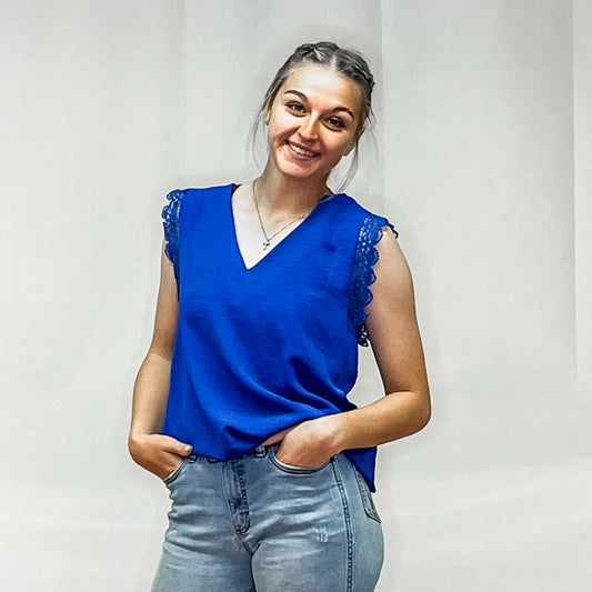 Ladies Woven Top - Cobalt Blue