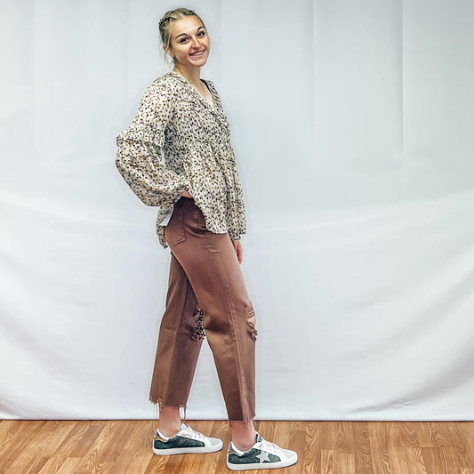 2 Way Neckline Washed Ribbed Cropped Tank Top - Lt. Camel