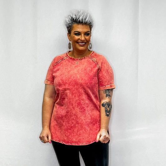 Stone Washed Ribbed Seamless Crop Top - Coral