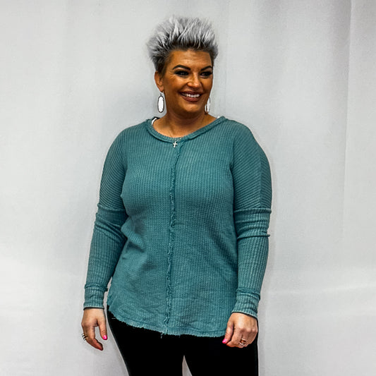 Washed Baby Waffle Oversized Long Sleeve Top - Dusty Teal