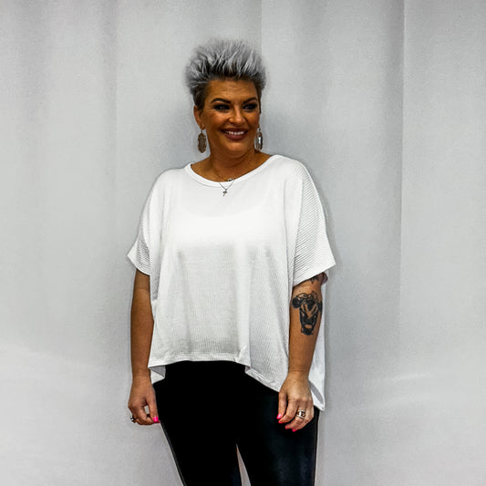 Ribbed Striped Oversized Short Sleeve Top - Off White