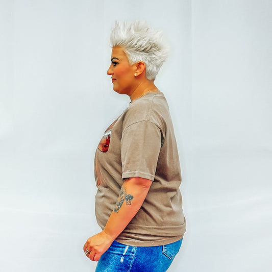 Coquette Football Bow Graphic Garment Dyed Tee - Espresso