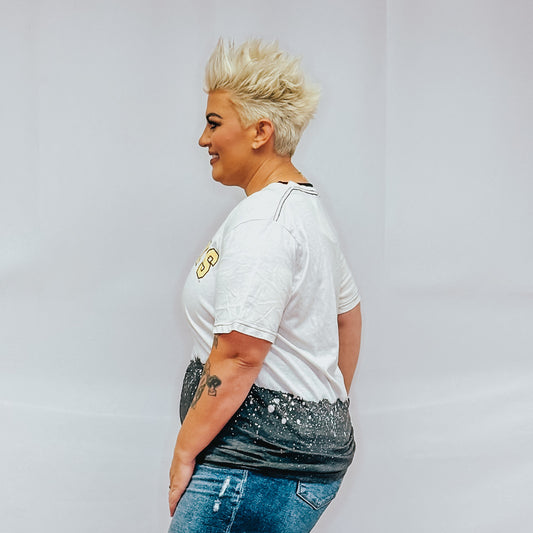 Wyoming Cowboys Cross Roads Bleach Dyed Short Sleeve Tee - White/Grey
